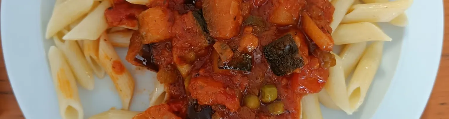 Pasta with Italian vegetables and tomato sauce